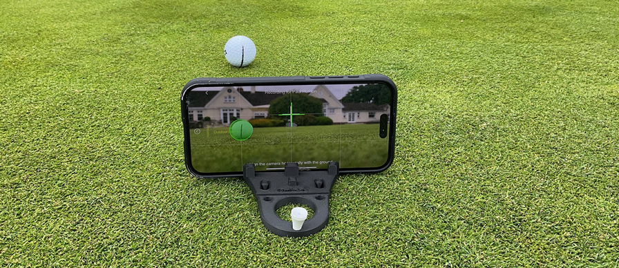 Once the software detects the golf ball the yellow circle will turn green and you will hear an audio beep. For a right-handed golfer, the ball must be hit from the left-hand side of the screen, and from the right-hand side of the screen for a left-hander. When you have the final ball position, it is a good idea to mark the spot on the putting surface where you will be hitting the golf ball for multiple putts.